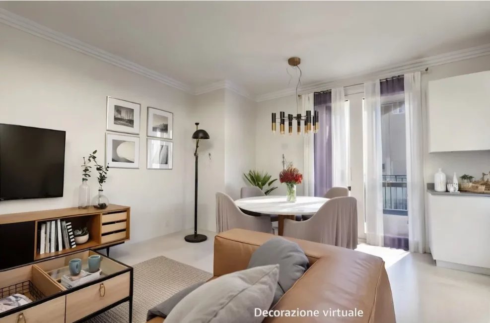 L’immobile si apre su una luminosa zona giorno con soggiorno e cucina a vista, accesso diretto al balcone esposto a est, dotato di inferriata per una maggiore sicurezza e di tenda da sole motorizzata, ideale per vivere al meglio lo spazio esterno.